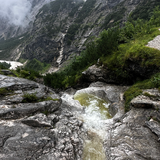 Nach der Partnachalm verläuft der Weg relativ gemütlich entlang der Partnach. Der mächtige Gebirgsfluss aus der Klamm ist hier nur noch ein kleines Bächlein und plätschert munter über die Steine. Ein paar kleinere Anstiege gibt es hier schon, aber nichts Ernstes. Ungefähr 2 Stunden später erreichen wir die Bockhütte auf 1052 m, die von Mai bis Oktober geöffnet hat. Es gibt im Nieselregen eine erste Erfrischung und die frische Bergluft tut soooo gut!